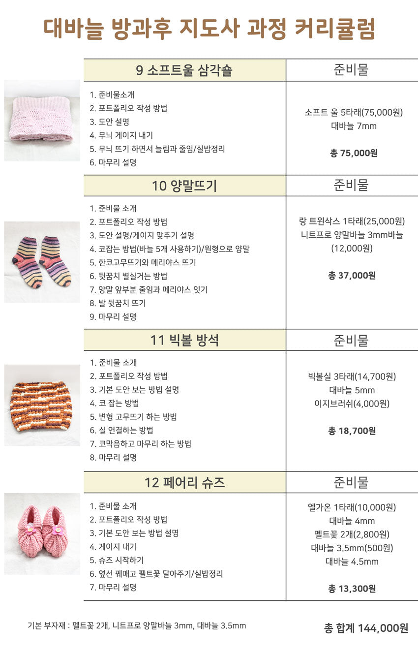 강의에 따라 단계적으로 작품을 뜨시다 보면